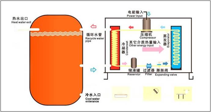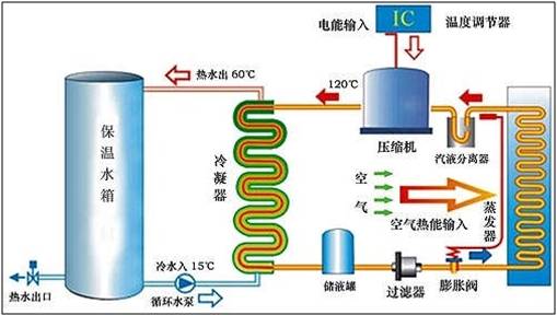 空氣能熱泵熱水器也稱“空氣源熱泵熱水器”“熱泵熱水器”“空氣能熱水器” 等。空氣能熱泵熱水器(空氣源熱泵熱水器)中的熱泵能把空氣中的低溫熱能吸收進來,經過壓縮機壓縮后轉化為高溫熱能,加熱水溫。這種熱水器(空氣源熱泵熱水器)具有高效節能的特點,其耗電量是同等容量電熱水器的1/4,是燃氣熱水器的1/3。空氣能熱泵熱水器(空氣源熱泵熱水器)的初期投資是煤氣、天然氣、電熱水器的三至五倍,但其日常運行成本較低。