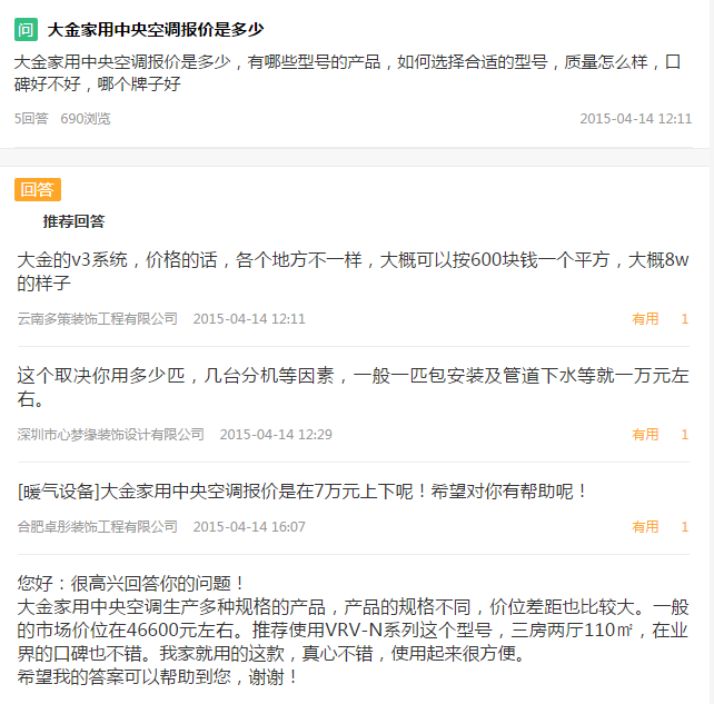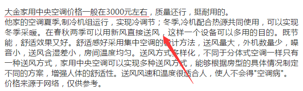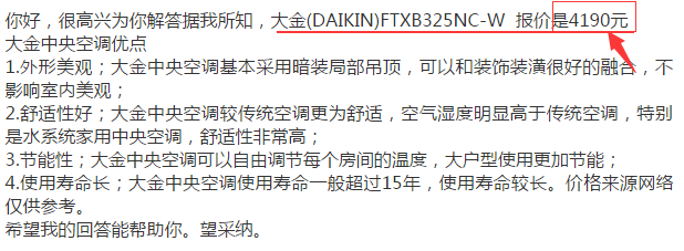 這位網友給出的大金家用中央空調價格的范圍在3000左右,沒有標注空調的功率以及型號,無法得知這個價格的準確性。