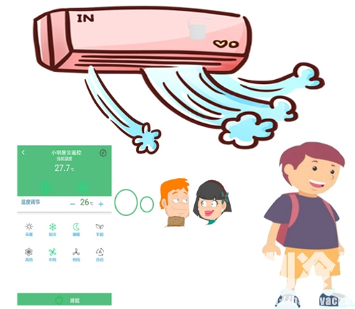 老張家兒子小明今年17歲,正處于叛逆期,每天打完籃球一身汗回到家,進自己房間就把空調開到十六七度,晚上睡覺也是玩著玩著就睡著了,因為空調溫度太低夏天經常感冒,老張媳婦心疼兒子,為此晚上經常等到小明睡著后進房間給他調空調,誰知有次老張媳婦進去時小明還沒睡著,認為媽媽想窺探他隱私,為這事一星期沒跟媽媽說話,晚上睡覺也把門給倒上了,可把老張兩口子愁壞了。直到倆人給兒子房間的空調安裝了云遙控器,設定了十點鐘自動進入睡覺模式(空調換到低檔、溫度調到26度,并在2個小時內每次上調0.5度到27度),再也不用進他房間了,還可隨時在手機上看看房間溫度,從此之后小明夜里再也沒有凍醒過,對父母的良苦用心也多了一些理解。